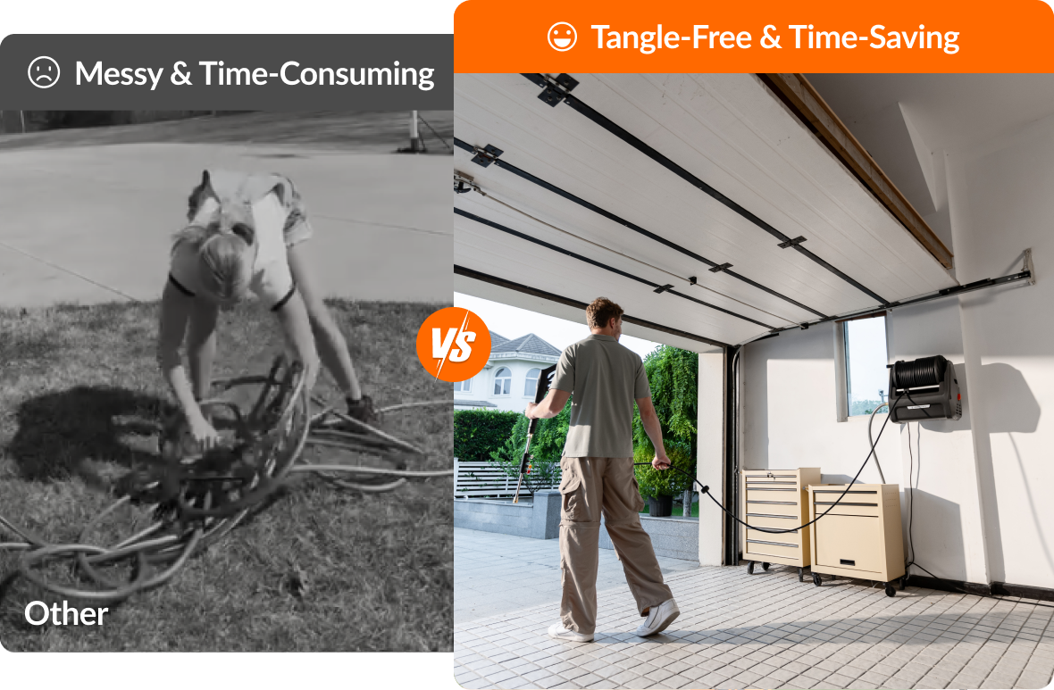 - Auto-Retraction, Tangle-Free : The auto-retract system lets the hose rewind smoothly with a gentle pull, eliminating manual winding and messy tangles. It keeps your space neat and saves time after every use, making cleanup faster and more effortless than ever.