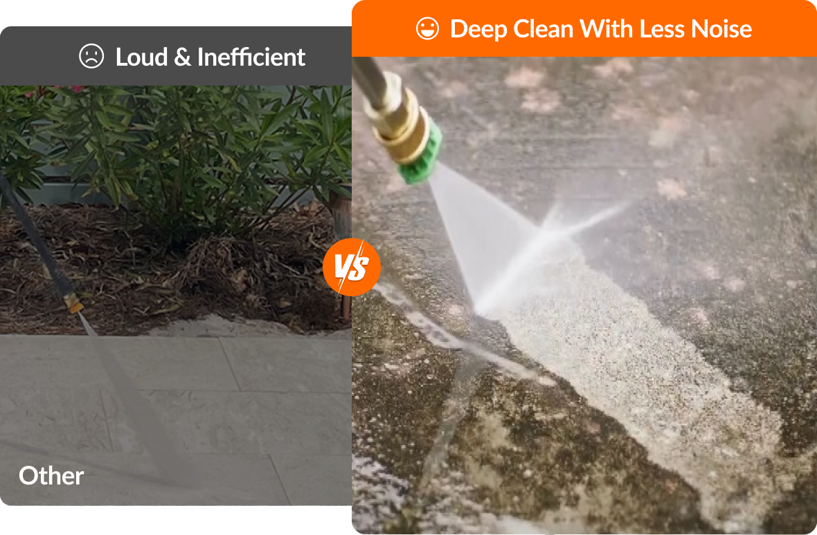 - Powerful Cleaning, Lower Noise: Delivering 165 bar, it blasts through dirt, oil, and grime on driveways, vehicles, and siding. Despite its strength, it runs at only 90–93 dB—about twice as quiet as gas models.